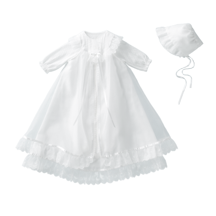 「セレモニードレス」とは、赤ちゃん用の晴れ着のこと。退院しておうちに帰るとき、お宮参りのときなどに着せてあげる特別な装いです。