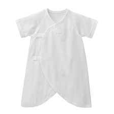 足の動きが少ない新生児期に使う保温のための肌着。短肌着と重ねて使います。股ホックがないので、おしっこの回数が多く、おむつ替えの多い時期に便利です。