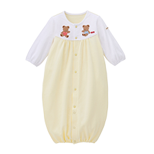 「ツーウェイオール」は新生児期※にはドレスとして、足の動きが活発になったら足を分けてカバーオールとして使うことができます。 「プレオール」は最初から足が分かれた状態で生まれてすぐは10分丈・10分袖となり、生後3か月になるころには7分丈・7分袖で着用できます。お子さまの成長と季節の変化に合わせて快適に着られます。