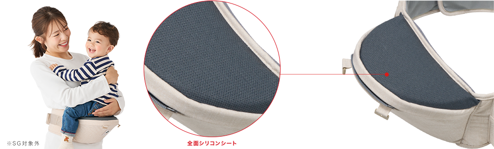 ヒップシート全面にシリコンシートを施し、赤ちゃんのお尻をしっかりホールドします。