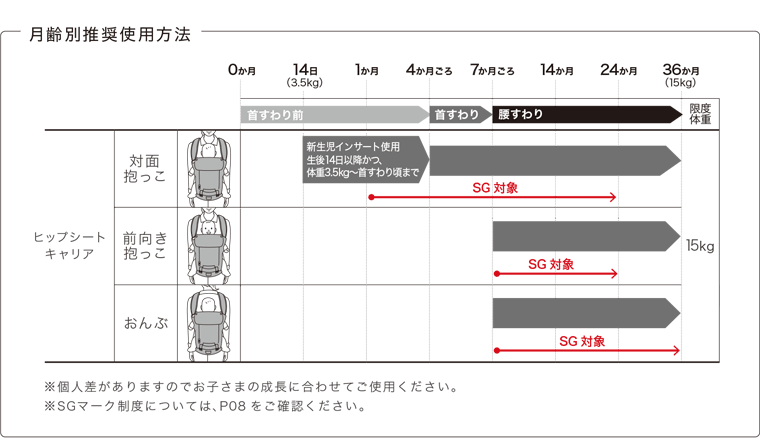 - ※タテ抱っこ24か月から、36か月まではSGマーク制度対象外です。
